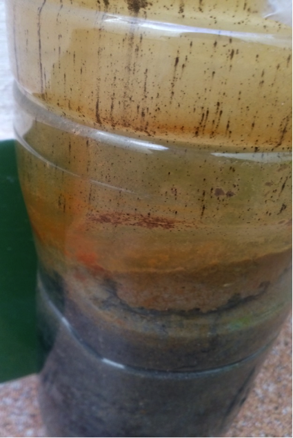 April 6th: Water has turned into a clear brown and some green algae have grown on the ground surface.